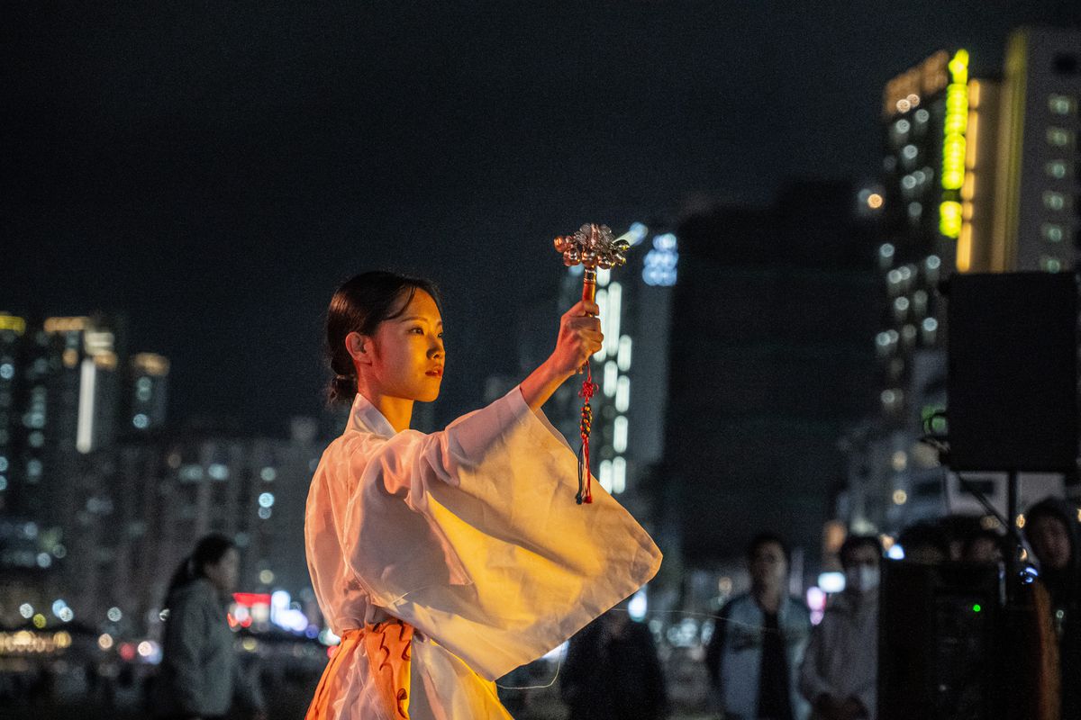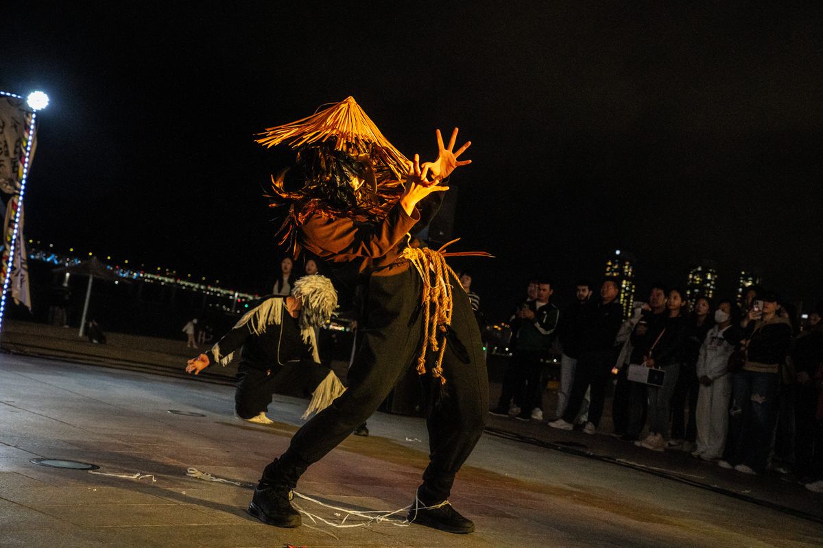 La obra mezcla el compás hipnótico de la danza de máscaras coreana y los rituales chamánicos con la energía vibrante del K-pop, creando un mundo donde tradición y cultura contemporánea se fusionan. La invitación es a no seguir una trama lineal única, este es más bien un viaje inmersivo a través de escenas y encuentros, cada uno de los cuales se sumerge en una pesadilla extraña, colorida y, a veces, inquietante.