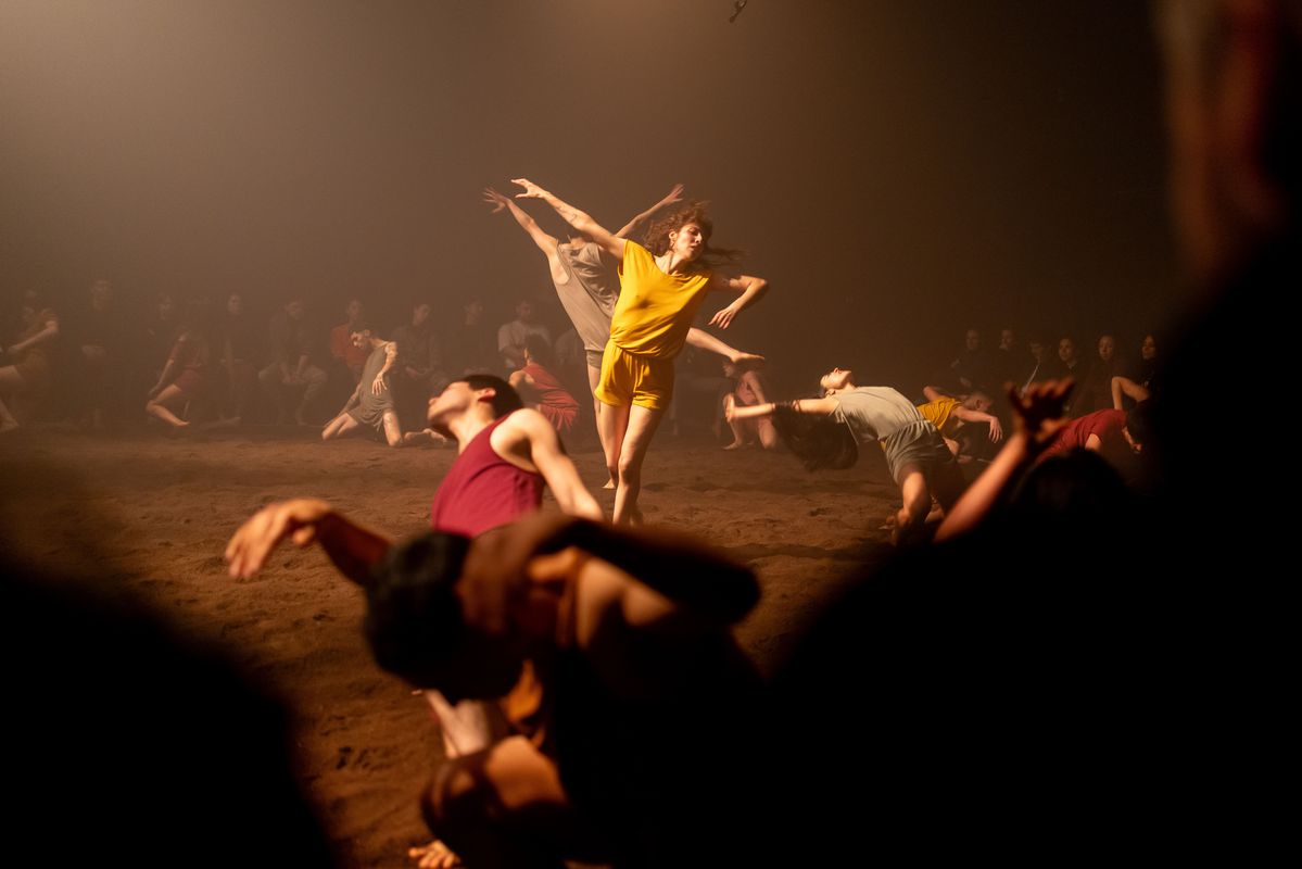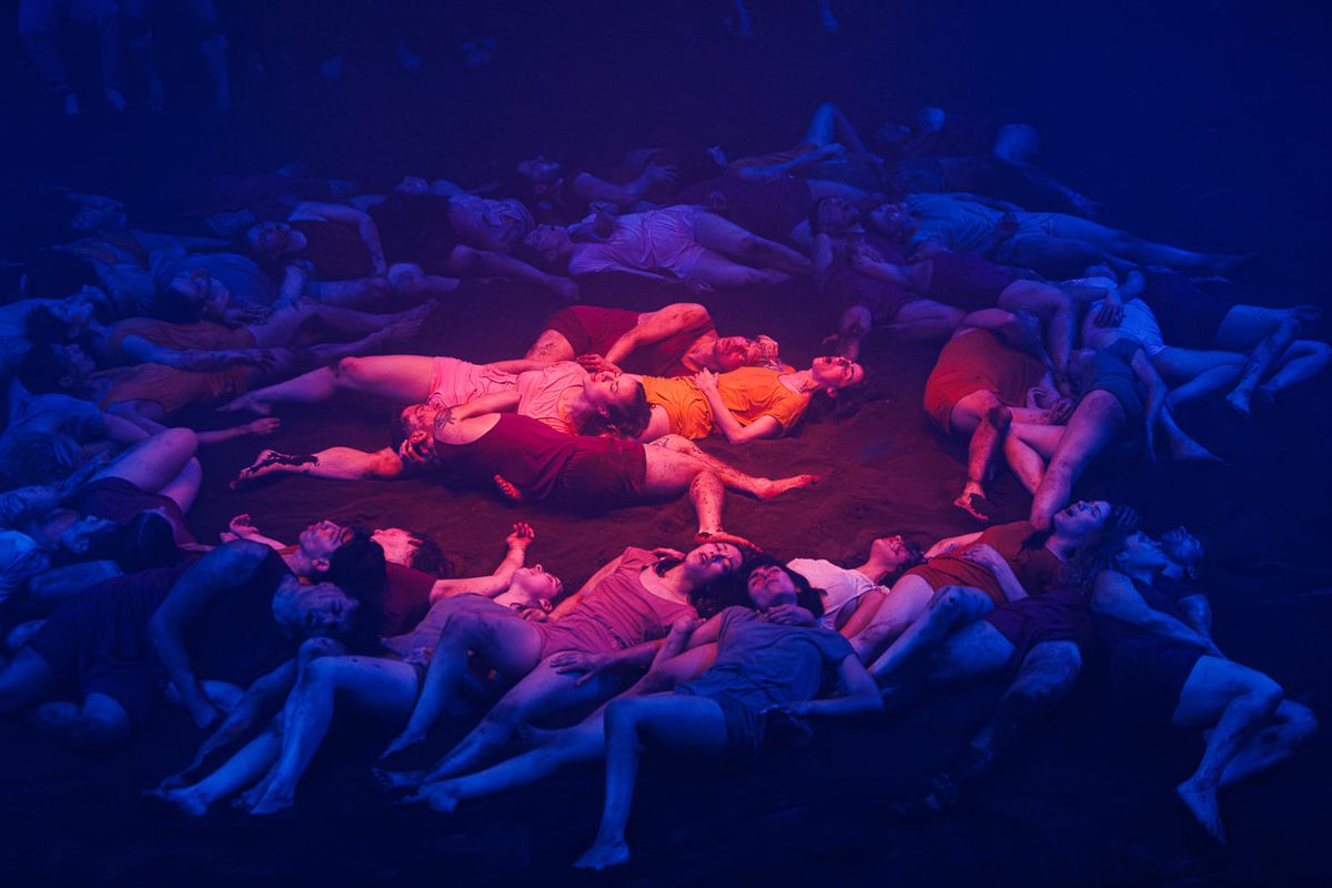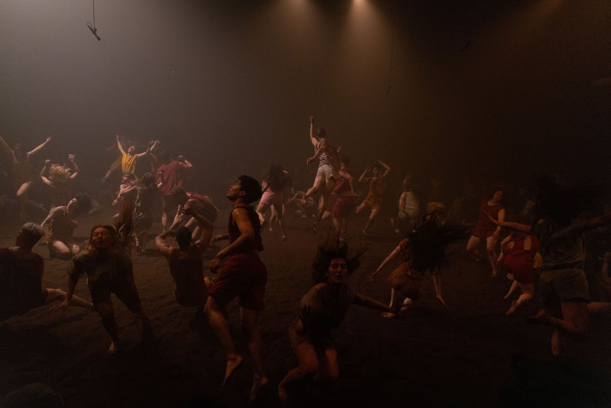 La versión de José Vidal llevó ese rito al colectivo, con 47 cuerpos que guían una experiencia sensorial. Olor, color, temperatura, textura, movimiento y sonido envuelven a los espectadores que entran descalzos a la sala. "Vivir una experiencia intensa de rito contemporáneo es un espacio vital para sentirnos parte de un tejido colectivo. La invitación es a permitir que surja la emoción, el éxtasis, el decante emocional también, y por esto la pieza propone la participación sensorial a través de un medio ambiente, así como también cuando las personas son invitadas a integrarse al rito escénico", cuentan sus creadores.