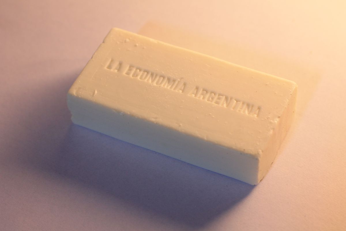 Hay un juego de espejos. En la PYME pasa todo lo que pasa en la economía argentina: El dueño promociona su producto con la obra, busca un socio que cree puede estar sentado en la platea, da a conocer formas de inversión y ofrece trabajo a los espectadores. En la obra también pasa todo lo que pasa en la economía argentina: una empresa inicia actividad, hay inflación, crisis, despidos, una huelga, negociación, jabones gigantes que persiguen a los empleados y canciones, muchas canciones. Y en escena se fabrican jabones, desde la mezcla de materias primas hasta el empaquetado. Los vemos pasar -mansos- sobre la cinta de montaje enfrente nuestro. Al terminar la función se ofrecen a la venta, a precios populares. Son marca “La economía argentina”.