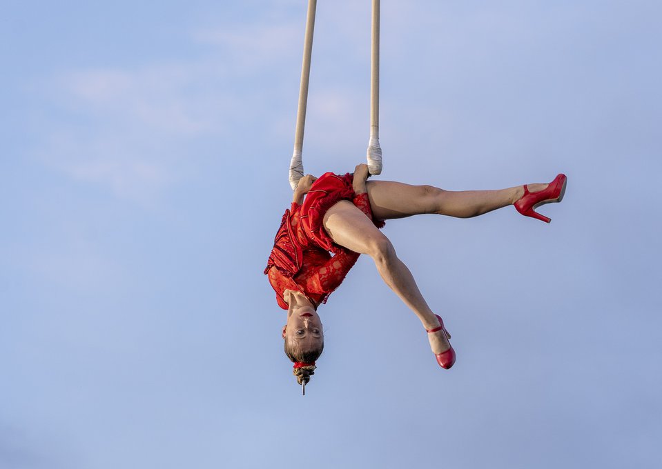 Rouge! de la compañía francesa Gratte Ciel será un espectáculo de acrobacias aéreas que reúne bailarines y acróbatas, en una performance donde los artistas desarrollarán sus destrezas en medio de un torbellino escarlata y música palpitante. Este circo aéreo, se presentará en cinco comunas de la Región Metropolitana gracias al apoyo del Instituto Francés de Chile: el 6 de enero en Pudahuel, el 8 de enero en Ñuñoa, 11 de enero en La Pintana, 13 de enero en Maipú y finaliza sus espectáculos el 15 de enero en Santiago.