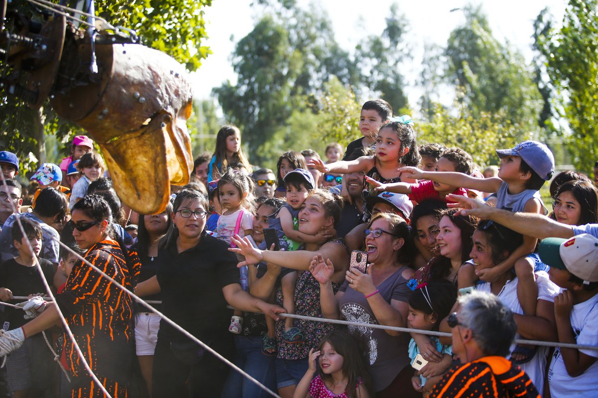 Con 146 funciones gratuitas en 24 comunas y 8 regiones del país, Santiago a Mil 2020 también tuvo hitos que serán inolvidables en nuestra historia como La Pichintún, nuestra primera figura mecánica confeccionada 100% en Chile, que recorrió 10 comunas de la Región Metropolitana invitando a las familias a tener más conciencia sobre el medio ambiente; El Jardín de los Ángeles de los belga Theater TOL que pusieron el toque de fantasía con su teatro aéreo, al igual que el australiano Tom Flanagan que nos deleitó, con 16 funciones a lo largo del país, y su circo mudo en Kaput, y La Parada de los Topos de Philipe Quesne que irrumpieron en el espacio público. Mientras, la música y el reencuentro con la comunidad inmigrante estuvo a cargo de Bande à Pied Follow Jah, agrupación que se tomó la comuna de Recoleta, con presentaciones y talleres, que los hizo volver a sus orígenes. También, y en el marco de nuestra política de acceso, pudimos trasladar espectáculos como Cía Acosta Danza, King Lear, By Heart, La Flauta Mágica y Encuentros breves con hombres repulsivos a comunas de La Pintana, San Joaquín, La Granja y Valparaíso, completamente gratis.
