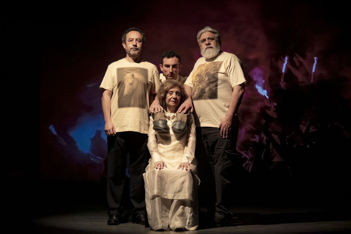La protagonista, una mujer mayor y profundamente confundida, encarna la psique de una patria atrapada entre todos los eventos históricos y políticos de los últimos setenta años. Mientras el caballo es derribado a su alrededor, ella permanece en su lomo invisible, dialogando con personajes como su hija militar, su marido detenido desaparecido, Dios, el diablo y otros.