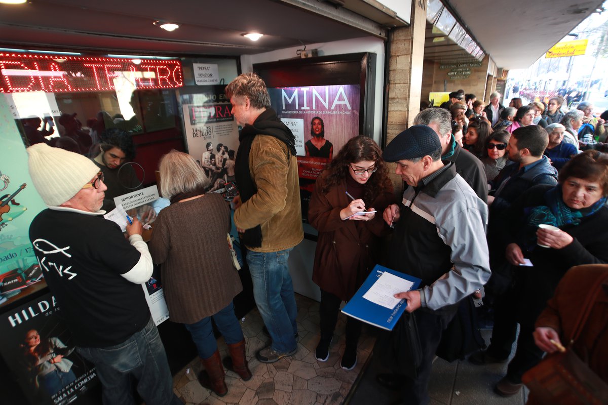 The first version of Al Teatro included the plays Hilda Peña by Aliocha de la Sotta; Historia de una Gaviota y del Gato que le enseñó a volar by María Izquierdo and Elvira López; La Contadora de Películas by Teatrocinema and Estado Vegetal by Manuela Infante, as well as the premieres of Costanera by María Elena Duvauchelle and Relatividad by Héctor Morales.