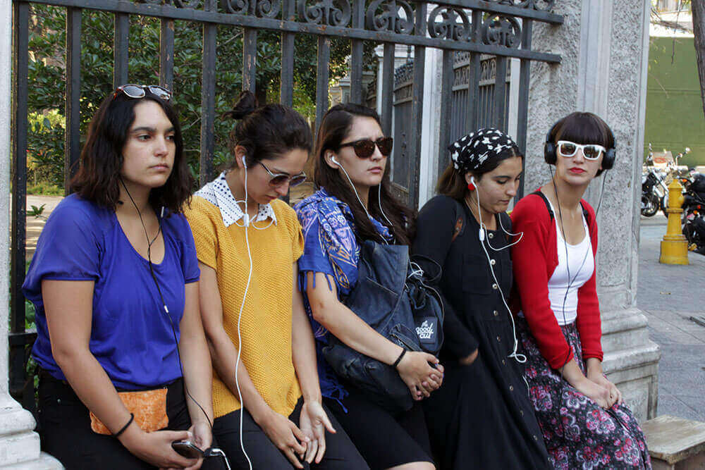 Armadas con un celular y audífonos, todas ellas se preparaban para comenzar un audio-recorrido por el centro de la capital gracias a la aplicación móvil AppRecuerdos, que a través de 129 relatos de audio que se activan por geolocalización entre Plaza Italia, La Moneda, Parque Almagro y el Mercado Central; invita a vincular el espacio público y la memoria que habita la ciudad. “Es una nueva manera de conocer y recordar la ciudad, porque vas teniendo nuevas y muchas imágenes”, dice Francisca, investigadora de 36 años, quien realiza la actividad por primera vez. “Es una manera de recorrer Santiago con la que te vas más nutrida, porque Santiago no es una ciudad de memoria. No te vas encontrando con pistas que te hablen un poquito de lo que ahí pasó, más allá de los monumentos a los milicos que hay. Lo que me gusta es que la aplicación es eterna e infinita, siempre va a estar ahí. Puedes jugar con esa aplicación en contextos muy diferentes, como hoy”.