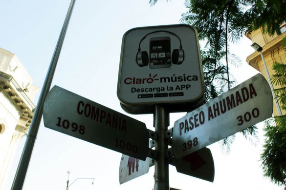 La ruta continúa por Paseo Ahumada, luego por Huérfanos a la izquierda, hasta llegar a la esquina con Estado. “Con fusil o sin fusil, Cristo vencerá” se escucha decir en el audio relatado por Tania Medalla, quien recuerda un suceso protagonizado por su madre embarazada de 8 meses versus carabineros que tomaban presos a protestantes. Coincidencia o no, en el lugar somos observadas por dos carabineros que vigilan el sector.