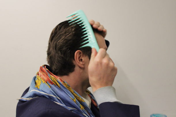 Lascar y Pavez comienzan por cambiar su vestuario, la caracterización de Parra es sencilla. Una camisa, un chaleco y el vestón final. La tenida se completa con un pañuelo en el cuello, un gorro y finalmente cambia las zapatillas deportivas por unos zapatos antiguos color café. Faltan veinte minutos para la obra, se toman un té y bromean sobre la cantidad de público que llegará. Hablamos de esta versión de la obra, con una escenografía más compleja y algunas adaptaciones a la dramaturgia que Florencia Martínez realizó para este Golpe 2.0. El frío es el tema principal, Lascar no suelta los guantes y prende la calefacción, pero ya es hora de bajar al escenario.