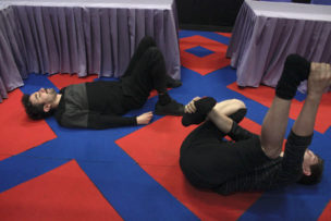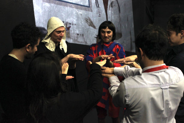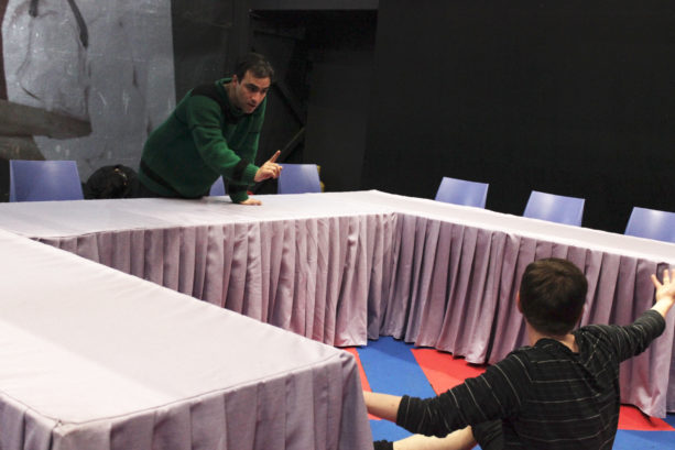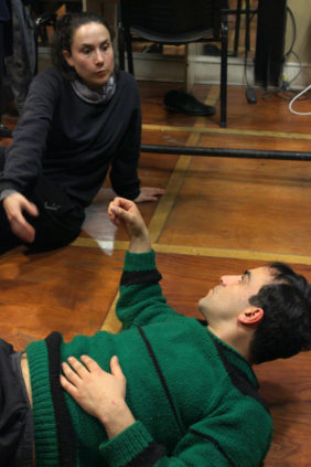 Están muy concentrados, falta media hora para comenzar la función y no dejan de ensayar por ningún segundo. Deciden hacer una “italiana” y repetir todo el texto de corrido. Es una experiencia particular verlos ensayar los diálogos mientras hacen actividades como arreglar su ropa, hacer ejercicios de calentamiento y prepararse. Cuando van en la mitad del texto bajan al escenario y terminan ahí.