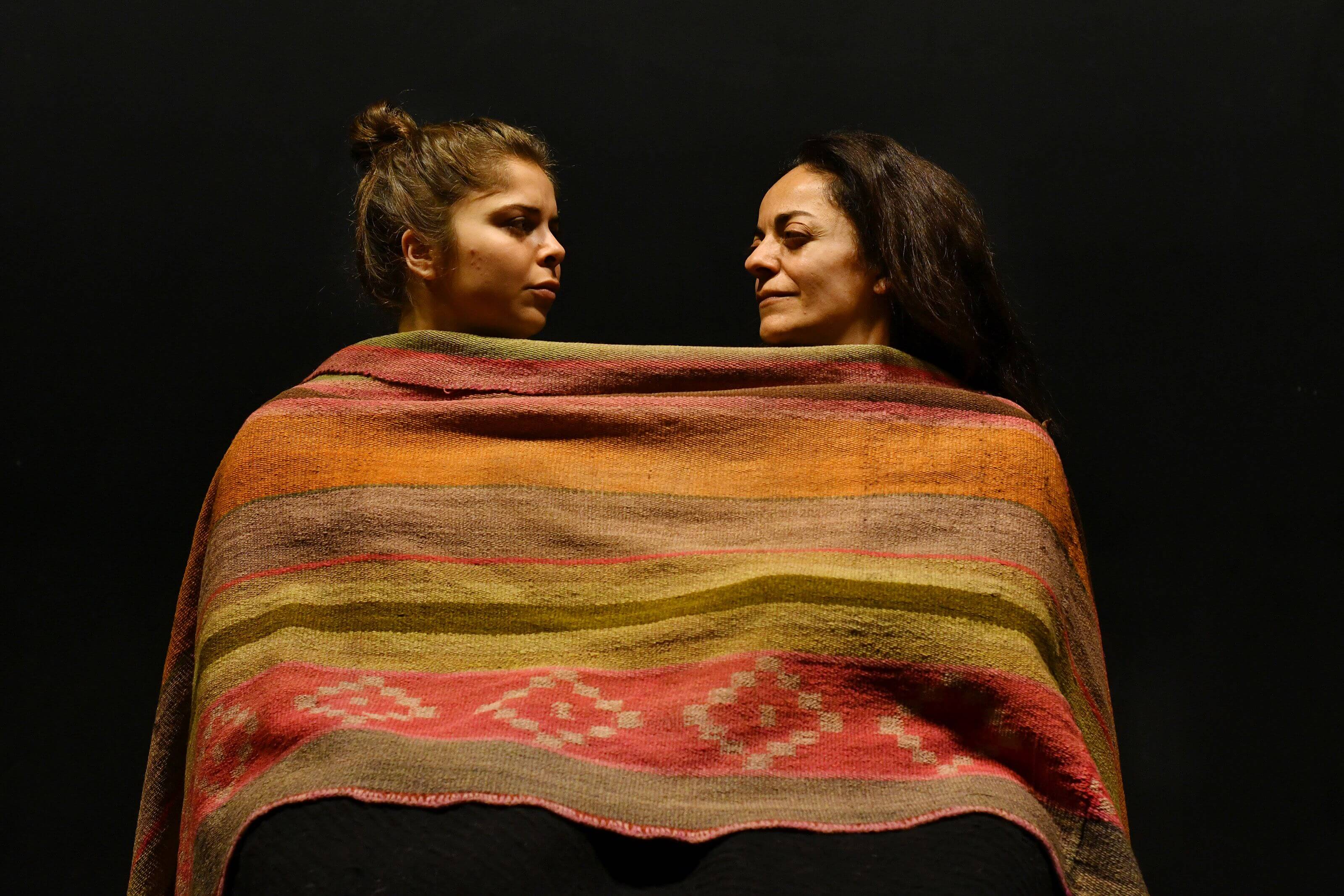 El acercamiento fue desde ese lugar, encontrarnos como artistas con ella. El trabajo que hacemos con Trini tiene que ver con uno y encontrarse desde uno lo que estoy perpetrando, porque no hay otra manera de actuar. Hay que tener una convicción de que lo que estás haciendo tiene un sentido, y esa conexión la tuvimos desde un comienzo con la Violeta Parra. Cuando ella dice: “Hay que darle sentido a la existencia”. Ella fue catalogada como intensa, y nosotras también somos reconocidas como actrices intensas; entonces hay harto vínculo con la Violeta, nos conectamos totalmente.