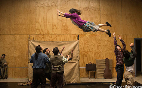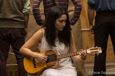 Un coro ciudadano de 100 personas junto a cinco músicos interpretan canciones emblemáticas de Violeta Parra en una obra de teatro musical de los hermanos Gopal y Visnu Ibarra.