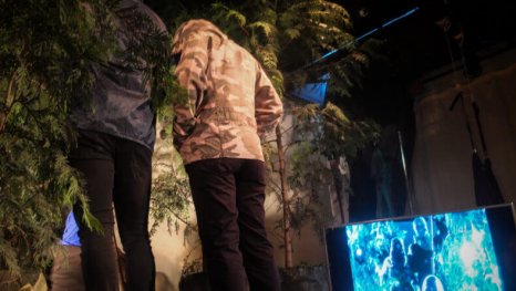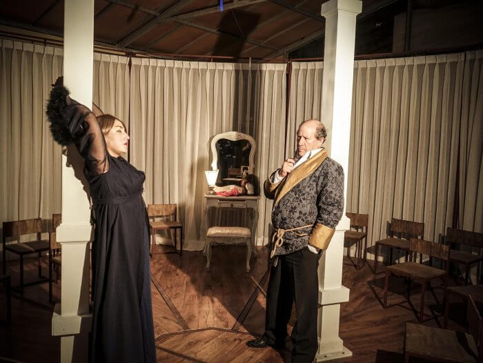 El público es dividido en pequeños grupos que suben por una escalera que se retira al comenzar la historia, ya que debido a las características del montaje la gente no podrá salir hasta que finalice.