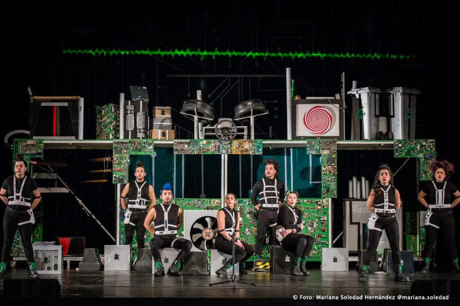 Una escenografía hecha solo de 400 kilos de chatarra electrónica. 8 actores en escena y 15 canciones que rockean y rapean mensajes que buscan crear una conciencia planetaria en niños, jóvenes y adultos, sobre la forma en que se fabrican los objetos que nos rodean, cómo hacerse cargo de los desechos que cada uno genera o cómo aplicar una economía circular.