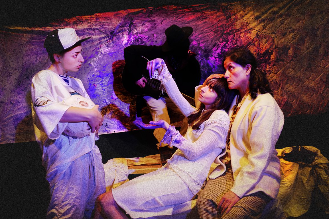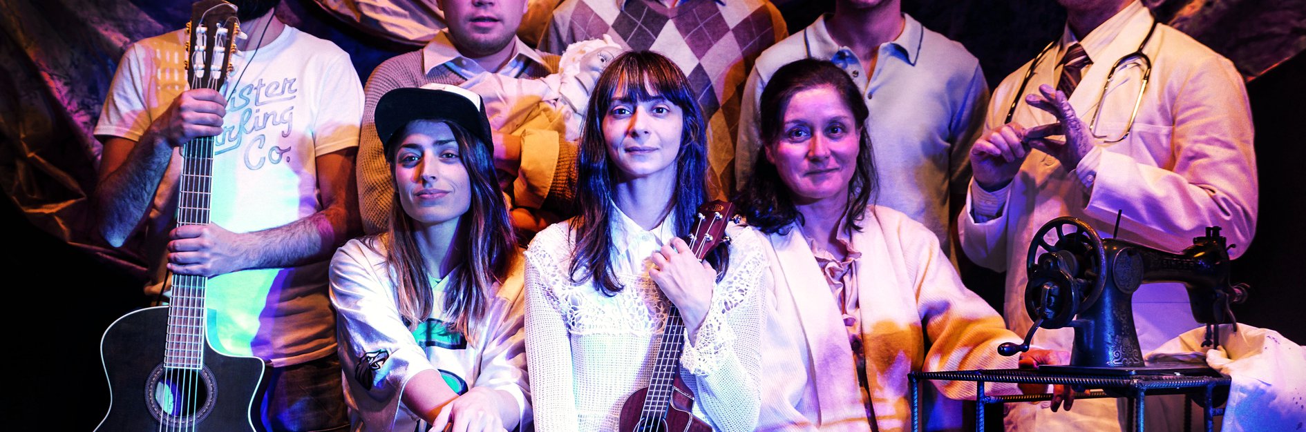 Cuando Violeta Parra era niña enfermó a toda una ciudad de viruela. Este hecho real inspira la obra Ayudándole a sentir , una invitación a imaginar un momento de la vida de la artista que conocemos poco: su infancia. A través de una propuesta lúdica y contemporánea para todo público, la obra explora la niñez de Violeta desde la cotidianeidad familiar, su interés por la música y su temprana cercanía con la muerte.