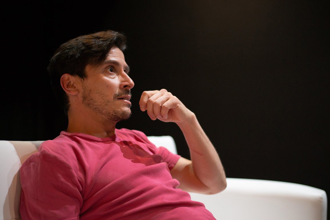 Las funciones de Ella lo ama en Chile forman parte del estreno mundial del nuevo trabajo del director y dramaturgo argentino Daniel Veronese (Encuentros breves con hombres repulsivos), quien vuelve a dirigir a un elenco chileno, conformado por los actores Tamara Acosta, Cristián Carvajal y Álvaro Espinoza, y cuenta con el diseño de luces de la destacada diseñadora teatral chilena Catalina Devia.