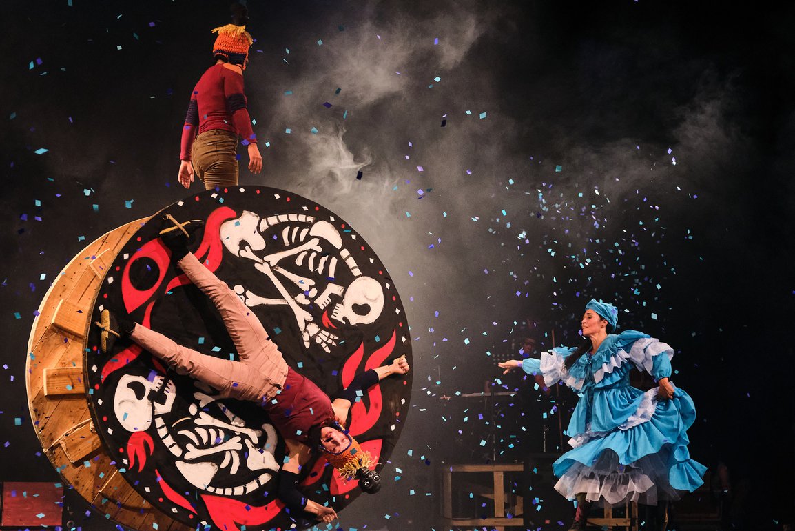 Una Latinoamérica en construcción se presenta en Fuego rojo, montaje de circo-teatro callejero creado en conjunto por la compañía chilena La Patogallina y la catalana Cíclicus. Está basado en la trilogía Memoria del fuego, del uruguayo Eduardo Galeano, que pone en tensión memoria y actualidad. Un trabajo que plantea preguntas sin respuestas posibles: ¿cuánto hemos perdido de nuestro pasado?, ¿cuánto de él vive con nosotros hoy?, ¿será posible reconectarnos con esa memoria?