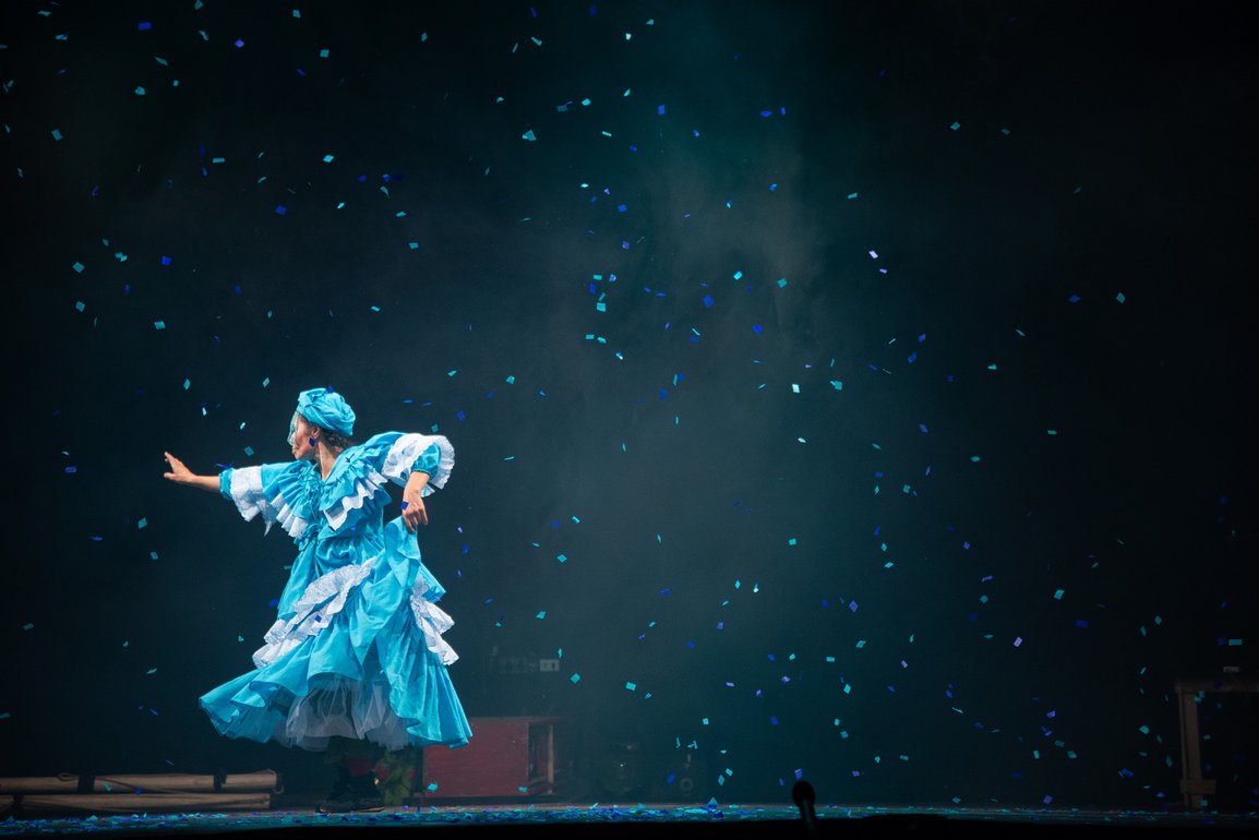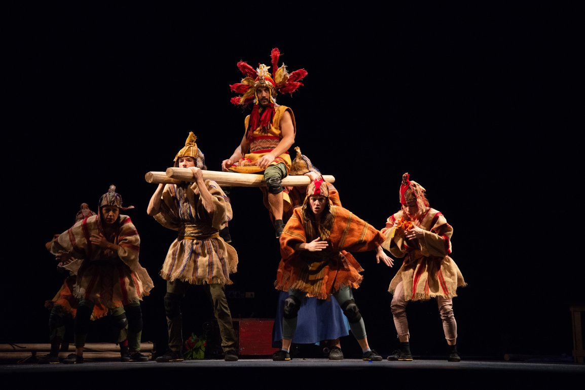 Un funeral se transforma en una fiesta pagana, un ataúd se convierte en un portal por el que soplan las voces de Atahualpa y Jemanya, los ritos del yawar y las animitas se dibujan en una ópera rústica que se presenta como espejismo ante público. El teatro físico y el circo contemporáneo se mezclan para dar vida a una serie de pasajes oníricos utilizando la manipulación de objetos, la creación de imágenes poéticas y la música en vivo como elementos fundamentales del lenguaje escénico.