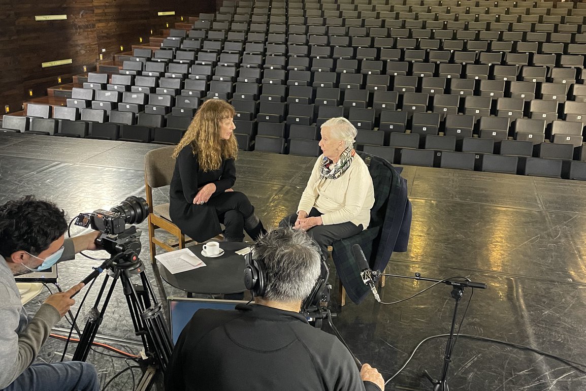 La nonagenaria actriz Delfina Guzmán conversa con Claudia Di Girólamo en las instalaciones del Centro GAM. En esta entrevista, la reconocida actriz, una de las fundadoras del Teatro ICTUS junto a Nissim Sharim, recuerda lo que encendió su pasión por la actuación, llevándola tardíamente -estando casada y con dos hijos- a estudiar Teatro en la U. de Chile, transformándose más tarde en una de las actrices más queridas de la televisión local, gracias a sus inolvidables papeles en las teleseries de TVN. Delfina habla también habla de su momento actual, de algunos de sus últimos papeles en el teatro –la obra Aliento dirigida por Elisa Zulueta- y de su forma siempre desenfadada de enfrentar la vida y la muerte.