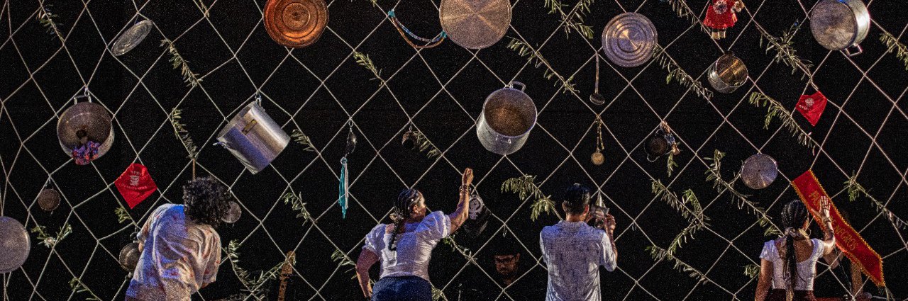 De P.T.C Núcleo de creación Arica | Dirección Colectiva Fernando Montanares Paula Gallardo, Jaime Escobar, Pablo Domínguez | Intérpretes: Camila Marchant Navarrete, Gabriela Paz Espinosa Hormazábal, Gabriel Olivares Blanco, Michael Palape Berríos | Músicos: Victoria Villablanca Figueroa, Domínguez Calderón, Pablo Domínguez Calderón | Espacio de Creación: Centro MB2 para la Experimentación de las Artes |